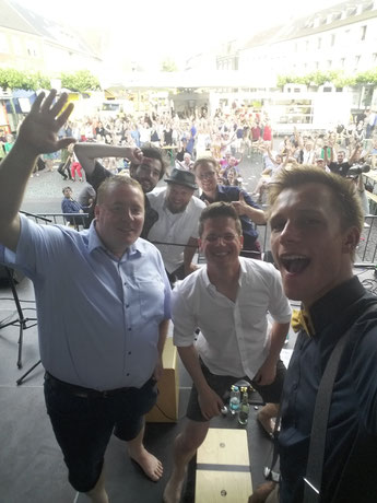 Endlich hatten wir mal Glück und durften perfektes Straßenpartywetter erleben. Wie immer waren wir das Letzte und durften die Straßenparty mit einer Menge Zuhörer beenden. Es fühlte sich schon ein bisschen, als wäre diese riesige Bühne unser zweites Zuhause geworden.